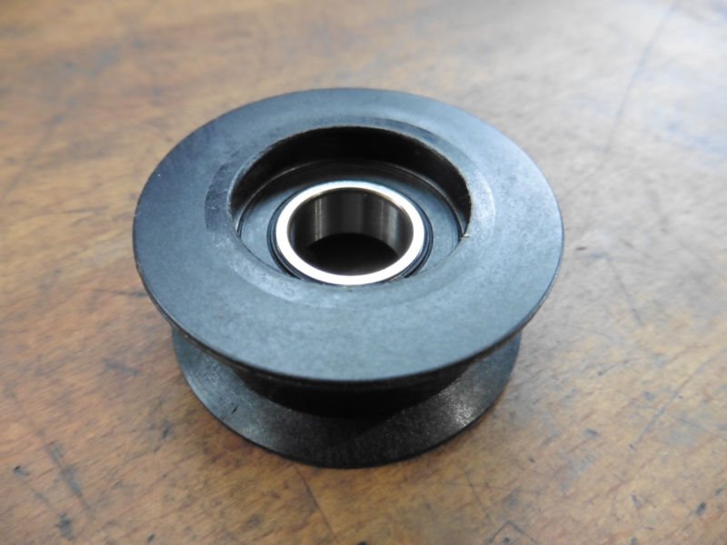 Die Umlenkrolle besteht aus schwarzem Kunststoff.
